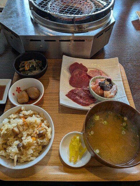 知多郡東浦町の焼肉屋「旨焼肉一」で食事。 席は、テーブル席とカウンター ランチメニューは以下の5種。 焼肉ランチ 日替わりランチ うどんランチ そばランチ 日替わり丼 一番人気とある焼肉ランチを注文。 焼肉ランチは、牛三種、鶏1種、小鉢2種、味噌汁、お新香、デザート、飲物のセット。 肉は焼き台で焼いて熱々でいただきます。 網焼きなので肉が網に焦げ付くのが玉に瑕。 食べるとや... 詳細を見る