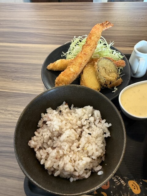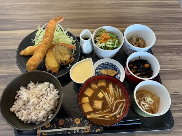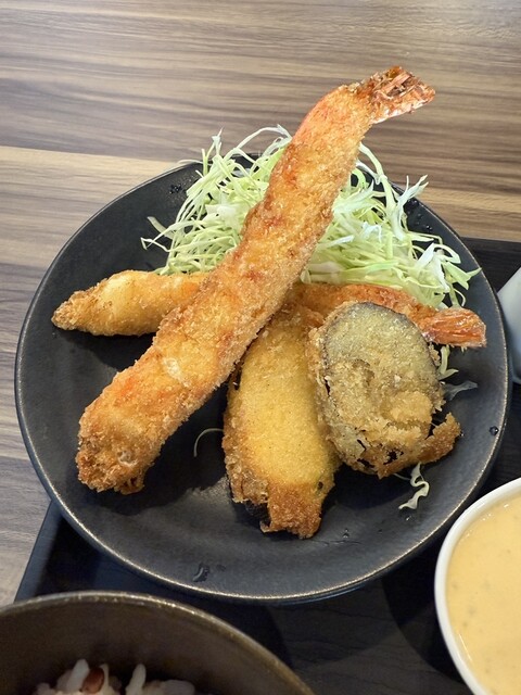 ここもランチ営業をしてると知っての訪問です。 メニューから、悩んで選んだ、大エビフライランチ(1,600円)。ご飯は白米と十六石米が選べて、大盛無料です。写真は十六石米の普通... 詳細を見る