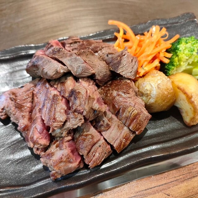 愛知県半田市にあるステーキ店、休日の12時頃にランチ目的で3名での訪問。 テーブル席に案内され、このメニューを注文してみた。 ■ インディアンズステーキ(200g)17... 詳細を見る