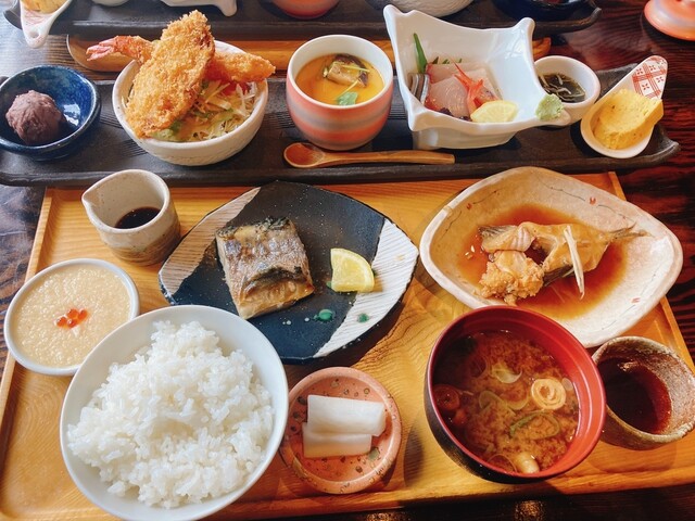 伊勢湾・三河湾でとれた新鮮な旬の地魚を豊富にとりそろえ、昼は定食・夜は単品料理を多数ご用意して皆様をお待ちしております。知多半島に遊びにいらした折には是非お気軽にお立寄り下さい。「湾コース」は、ご予約限定にて(11品)4400円、(12品)5500円とご用意しております。この他に、冬期は「ふぐコース」や「鍋コース」もご用意いたします。皆様のご予約・お越しを心よりお待ちしております。