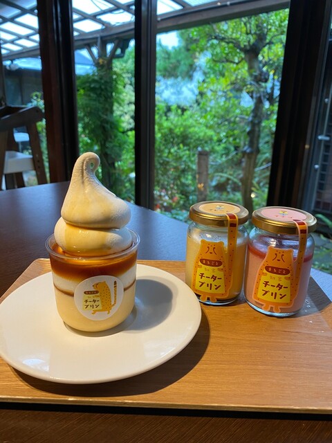 店内工房でひとつひとつ丁寧に手作りしているプリンをお届け♪"常滑牛乳"や"美浜の塩"など、知多半島の素材にこだわり、使用しております。1番人気の「チータープリン プレーン」や、完熟いちごの果肉をたっぷりのせた「チータープリン イチゴ」などをご用意。また、店内には庭園があり、紫陽花や池を眺めてお食事をお楽しみいただけます。可愛いロゴ付きのプリンをご家族やご友人へのお土産に是非ご活用ください◎