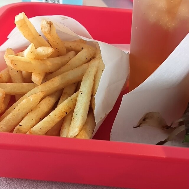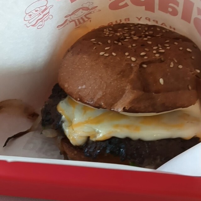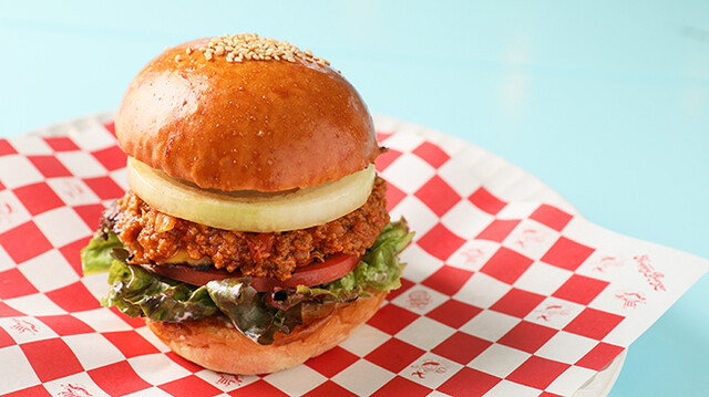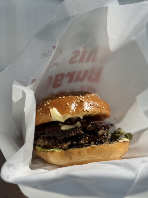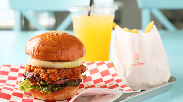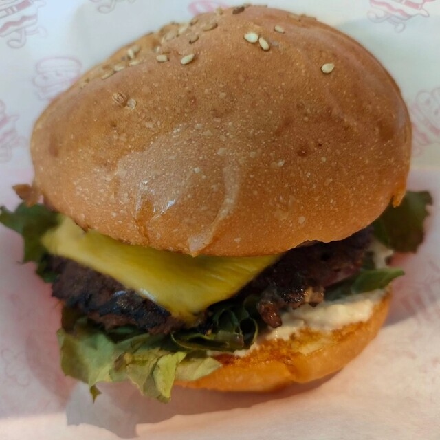 カリフォルニアファストフードスタイルのハンバーガーでアメリカ発祥のつなぎ無し100%ビーフを鉄板でカリッとキャラメリゼして作るバーガーとのこと。