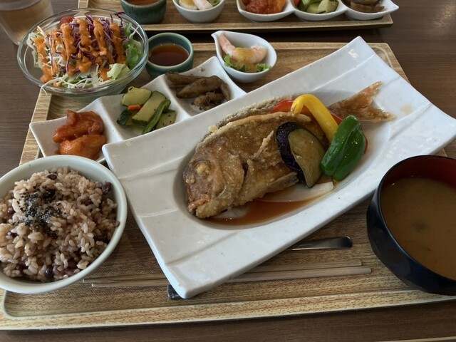 お魚好き必見!活魚丸ごと1匹使ったランチが好評。旬のお野菜たっぷりの惣菜膳セット付です
