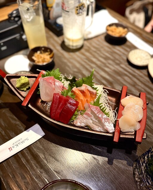 このおしゃれな居酒屋は、刺身や牛タン餃子が特に美味しかったです。新鮮な刺身はぷりぷりの食感で、魚の甘みが口いっぱいに広がります。牛タン餃子はジューシーで、香ばしい焼き目が付いていて、一口食べると肉汁が...