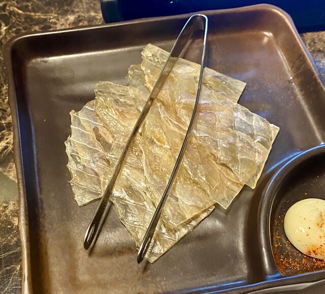 お通しはカワハギ。炙って食べます。