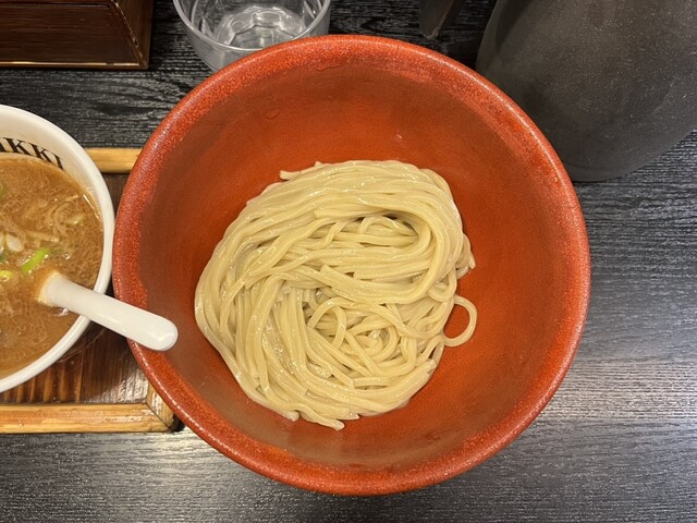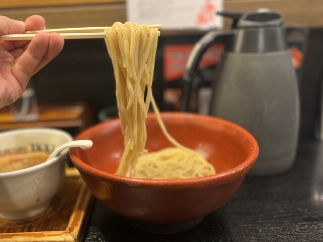 濃厚豚骨魚介スープと特注極太麺99.99でたべるつけめんをお楽しみください。