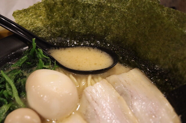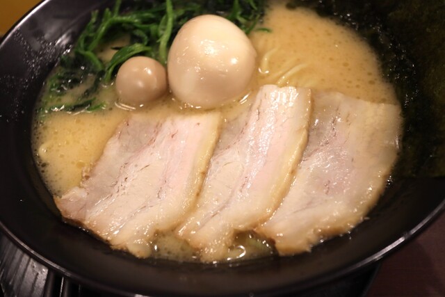 ローカルYouTuberの影響で常に行列の家系ラーメン店。平日21時なら並ばずに入れるので〆ラーメン。 〆なので普通の家系で良いかなと思ったけど限定の千二郎を勧められたのでそ... 詳細を見る
