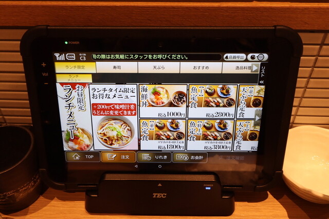 オーダーはタブレットで、会計はテーブルチェックです。
