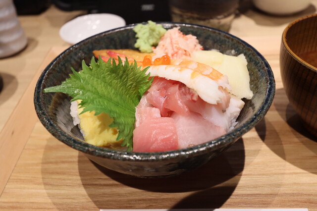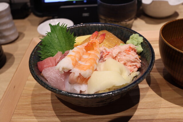 海鮮丼の内容は、エビ、イクラ、ブリ? 、何かの貝、カンパチ ? 、