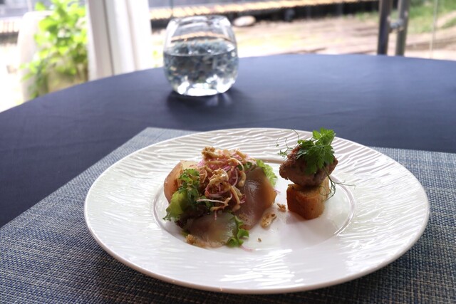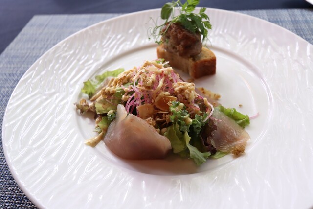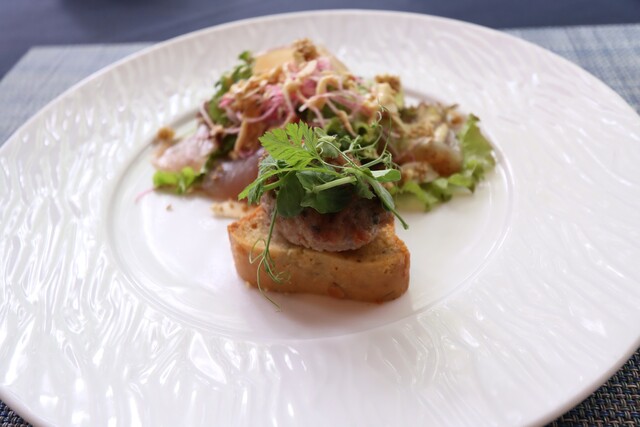 備長鮪のムシャマ、ケールのサラダ、知多産豚サルシッチャのスモーブロー