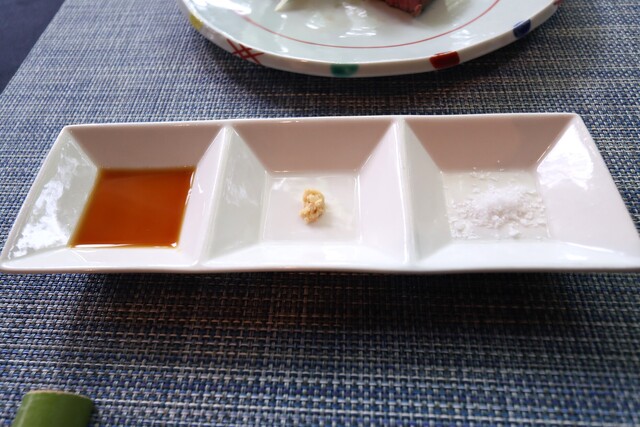 お塩、西洋わさび、自家製ぽんずで頂きます。