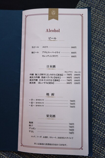 メニユーは花の名前が付いているようです。