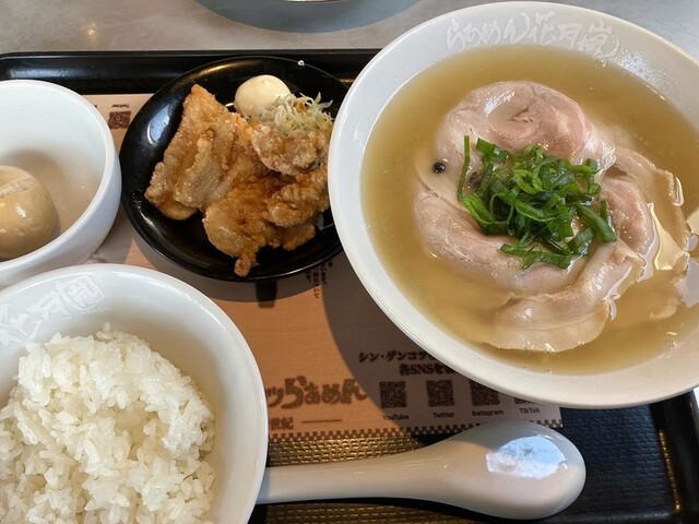 全国にチェーン展開している、らあめん花月嵐。コラボメニューで来た事はあるが、看板の豚骨ラーメンは初めて頂く。豚骨ベースの背脂醤油ラーメン、豚骨の感じはややライト、背脂の旨味がよく飲... 詳細を見る