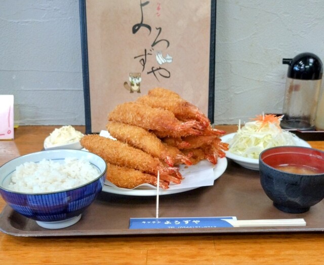 めちゃくちゃたくさんエビフライが食べたくなったので、久しぶりにキッチンよろずやに行きました。 もちろん注文はエビフライタワーです。 3人でしたので、ハンバーグ定食も付けました。 平日の夜でしたが、人気店のよろずやさん、店内はほぼ満席に近く、料理の提供までは少し時間がかかりました。 まずはハン... 詳細を見る