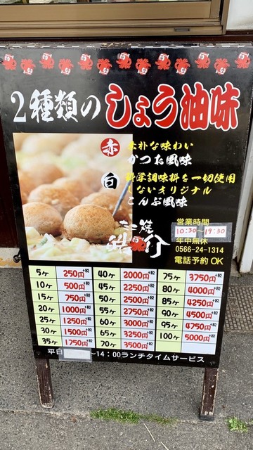 刈谷市駅から徒歩7分のところにある、醤油たこ焼きのお店です。