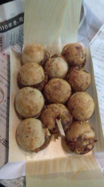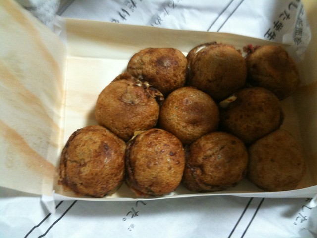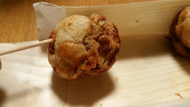 購入して時間がたったお土産なんで、先ずは冷えた状態でたこ焼きをパクり。