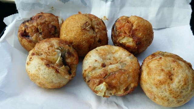 ソース・マヨネーズ等をかけるタイプではなく、出汁・醤油で味付けしたたこ焼きです。味付けは、自分好みで、近くを通った時には、買っています。味付けを濃いめの赤か、あっさりの白と選べるのも、嬉しいサービスです。