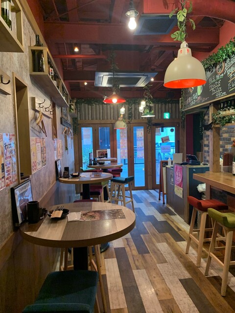 店内入ってすぐの席はカウンター席などがあり、バル風なオシャレで可愛い空間。