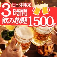 \日~木限定★生ビール付き3時間飲み放題/1日5組様限定!!⇒1500円!!