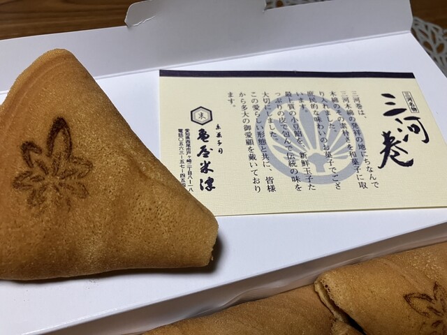 西尾市の和菓子屋 亀屋米津さんに訪問 看板商品である三河巻を購入しました。 三河巻は、あんこを モチモチ柔らかい生地で包んだお菓子です。 (一個192円) これが本当に美味しいのです。 この価格帯だと比類するものがないくらい あんこが上質。 そして玉子がたっぷり入ったモチモチ... 詳細を見る