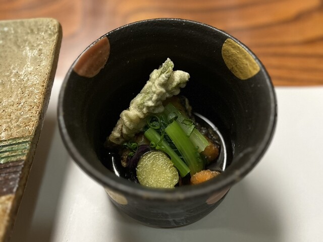 久しぶりに登味田さんへ。今回は法事の食事で利用させてもらいました。5,000円のコースです。先付からなかなか凝ったメニューで流石です。地元の人間にとってはシャコのわさびソースが嬉し... 詳細を見る
