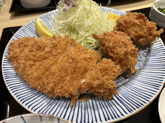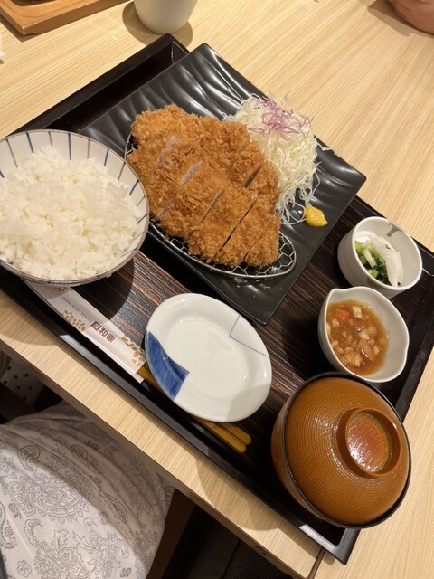 ロースカツに加えて、ヒレカツが2つの豪華なセット。追加でお願いした味噌ダレがまた絶品で、サクサクの衣に濃厚な甘辛味噌がよく絡み、ご飯がどんどん進みます。