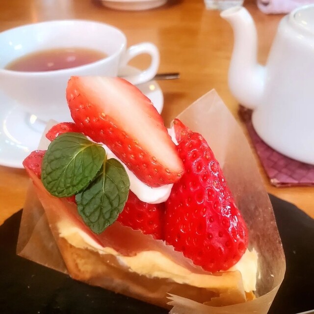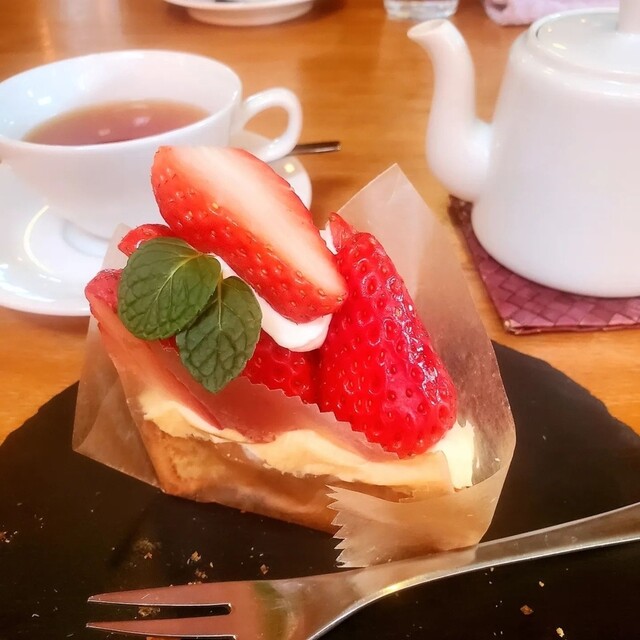 しかし、ケーキセットに出来ない季節のタルトの苺のタルトが気になってしまい単品で700円でしたが、別で注文してしまいました。
