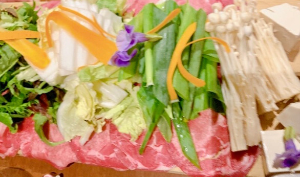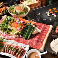 花朧のオススメ牛タンしゃぶコース! エディブルフラワーがとても可愛らしい名物の牛タンしゃぶしゃぶコースです。全8品が楽しめて、なんと5000円税込みで飲み放題付きです♪ インスタ映え◎一枚一枚上質な牛タンを店舗にてスライスした牛タンしゃぶしゃぶや、農家直送ベビーリーフを使ったしゃきしゃきサラダなどが楽しめます。女子会や合コン、デートなどにどうぞ♪