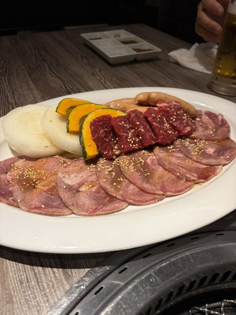 最初に運ばれてくる肉と野菜の基本セットと下記メニューが食べ放題