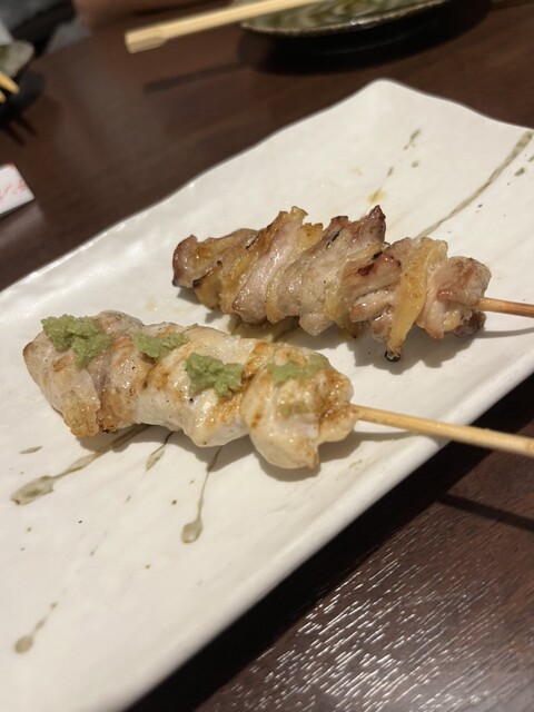 地元三河産の人気銘柄鶏「錦爽鶏」を使った焼鶏は、1本1本丁寧に串打ちし、備長炭で高温短時間で焼き上げジューシーな仕上がり!