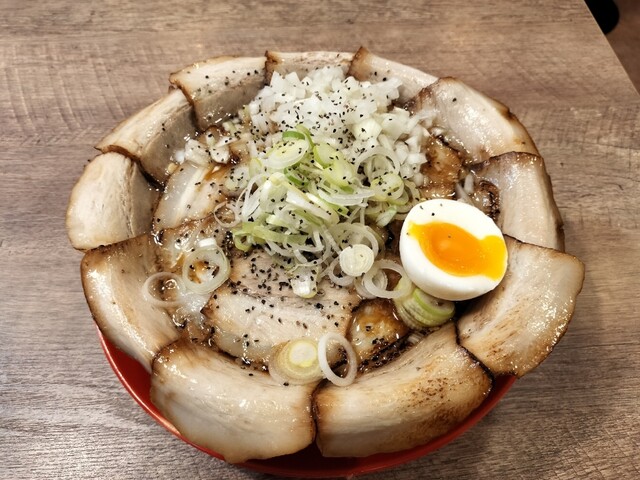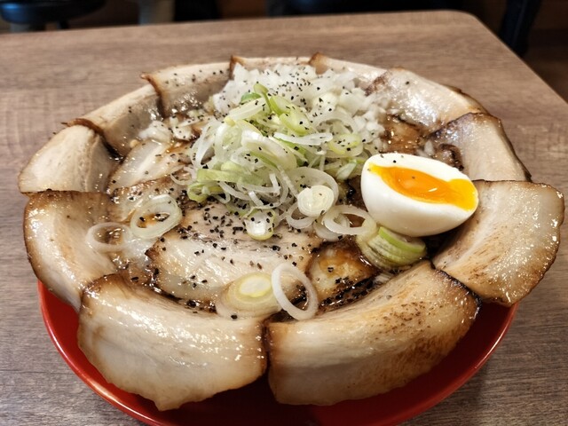ここのラーメン屋さんの存在すら全く無知ながらたまたまインスタで大迫力の焼豚ラーメンの画像を観たのがきっかけで訪問しました。苦手な券売機から左上の法則に則り弥太郎ブラック肉増し1200円をポチッと!平日のランチタイムはライス無料サ...