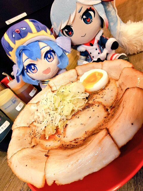 豊川のガツンと豚食いねぇ食いねぇ(ノ´・ω・)ノホイ 途中下車の旅で駅下の焼豚ラーメンはいかがかね!肉増ししてね!