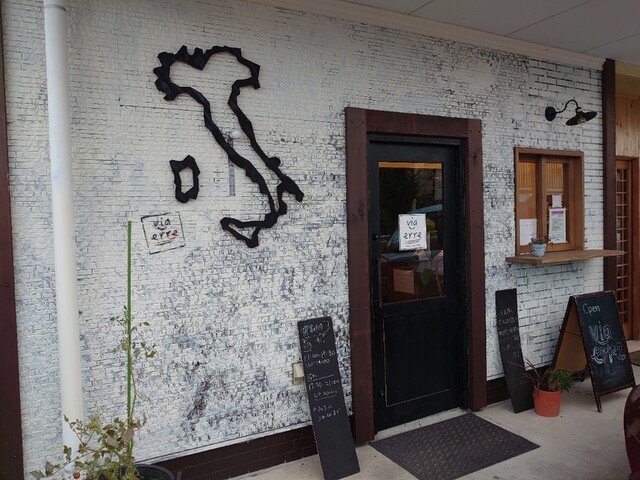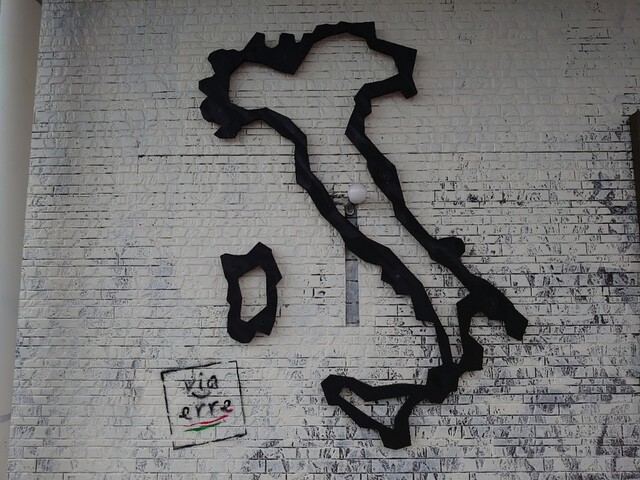 白い壁にイタリアの国の長靴が目印です。