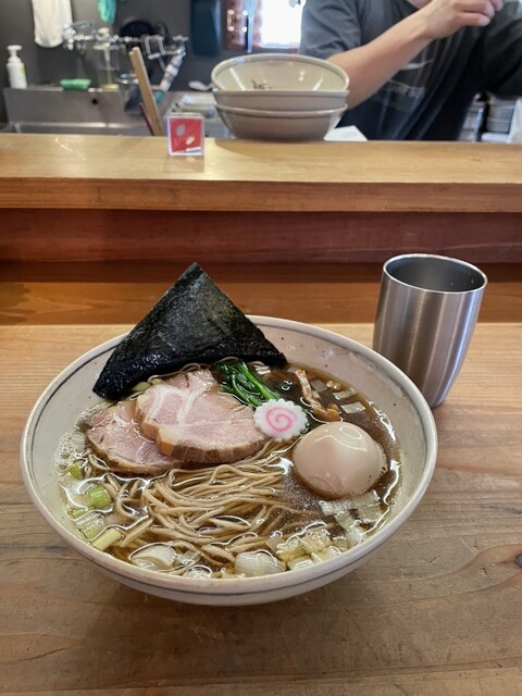だしそば(醤油)、味玉