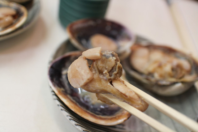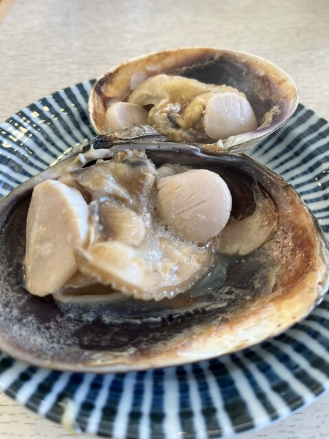 お店の外では、大アサリやサザエを焼いています。