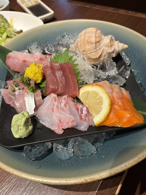 まずは豪華に刺身盛り合わせ6種。プリプリですね~。大生も最高だけど、日本酒飲みたくなる。間違えた。