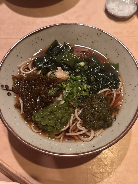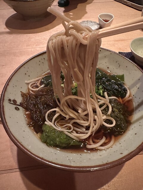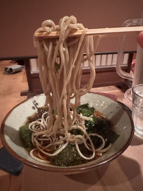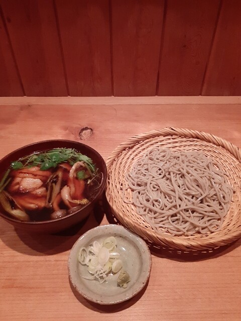 二度目の訪問。ランチで蕎麦をいただきました。比内地鶏汁蕎麦を。つけそば的な感じで、温かい付け汁に蕎麦をつけて食べる!比内地鶏は、コリコリと歯応えがありつゆに絡んで美味かったです。友人が頼んだ揚げなすも...