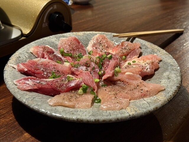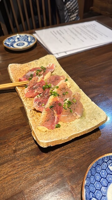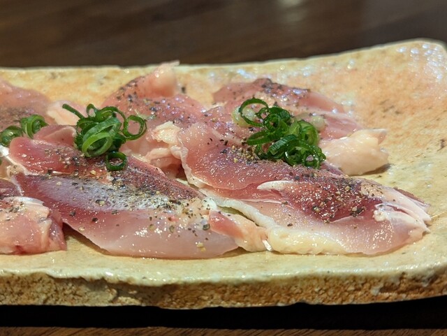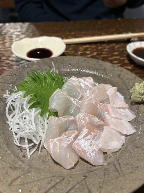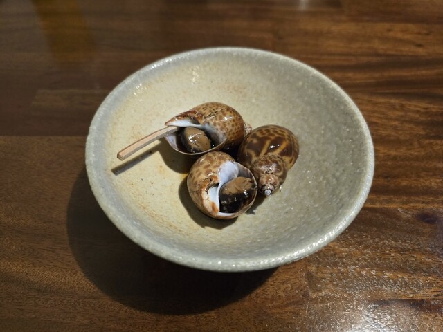 ボウボウの刺身、白身の刺身は弾力があって新鮮そのもの。サザエのお造りも肝まで付いてきました。比内地鶏の...