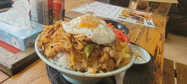 開店の1130に着き、テーブル席に座って「あいがけ丼」¥950+大盛250を注文。お店のおじさんに聞いたら、チョモランマはご飯3合半くらいとのこと。頑張ればいけるかも知れ...