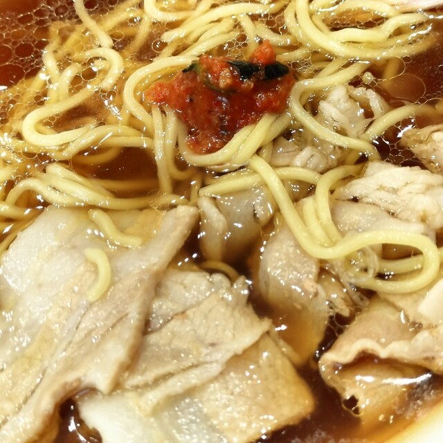 旨みスープを求め45年。単独でも旨みを感じる昆布のグルタミン酸とかつを節のイノシン酸の日本料理の2大要素。 合わせると相乗効果で単独の場合と比べて旨みの強さが3~7倍にも。グルタミン酸としいたけのグアニル酸も同様の効果があるとされ、この組み合わせをラーメンのスープに応用。 系列の焼肉店で培ったノウハウを活かし牛すじのスープやキャベツの芯などを使い焼肉店ならではの素材で深くコクのある旨みスープが自慢...です