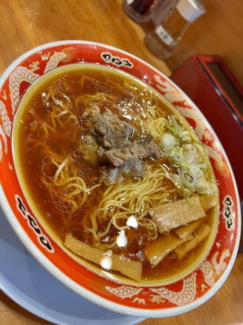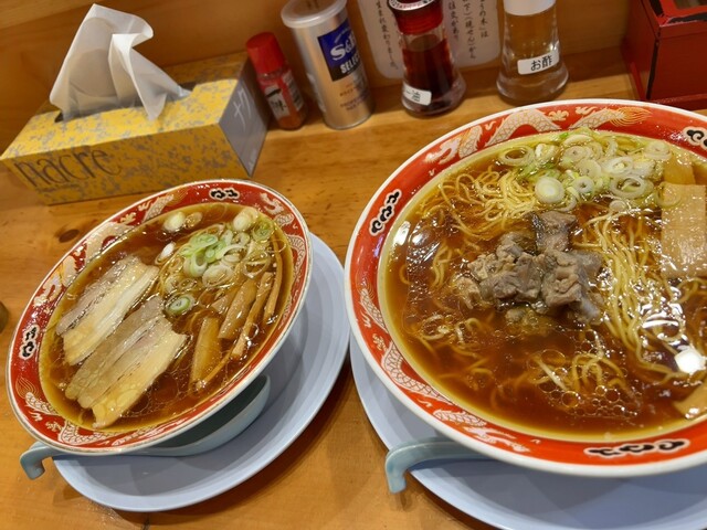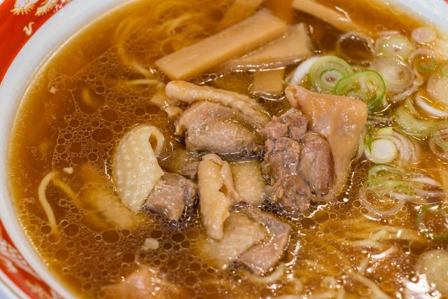 旨みスープを求め45年。単独でも旨みを感じる昆布のグルタミン酸とかつを節のイノシン酸の日本料理の2大要素。 合わせると相乗効果で単独の場合と比べて旨みの強さが3~7倍にも。グルタミン酸としいたけのグアニル酸も同様の効果があるとされ、この組み合わせをラーメンのスープに応用。 系列の焼肉店で培ったノウハウを活かし牛すじのスープやキャベツの芯などを使い焼肉店ならではの素材で深くコクのある旨みスープが自慢...です