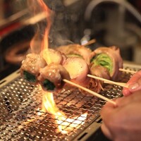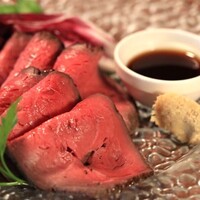 当店自慢の「自家製ローストビーフ」は、厳選したお肉を長時間かけて低温でじっくり火入れ。肉の旨味を最大限に凝縮し、口の中でとろけるようなしっとり柔らかい食感を実現しました。自慢の手作りソースとの相性抜群です。 もう一つの主役「野菜巻き串」は、旬の新鮮な野菜を丁寧に豚バラ肉で巻き上げ、炭火で一気に焼き上げ。炭の香ばしさと野菜の甘みが絶妙なバランスを生み出します。 生ビールは人気の**<香るエール>を含む充実の飲み放題付き**。歓送迎会や女子会など、ゆったりとしたお集まりに最適な、女性にも大人気のコースです。 ※料理内容はその日の仕入れ状況により多少異なります。