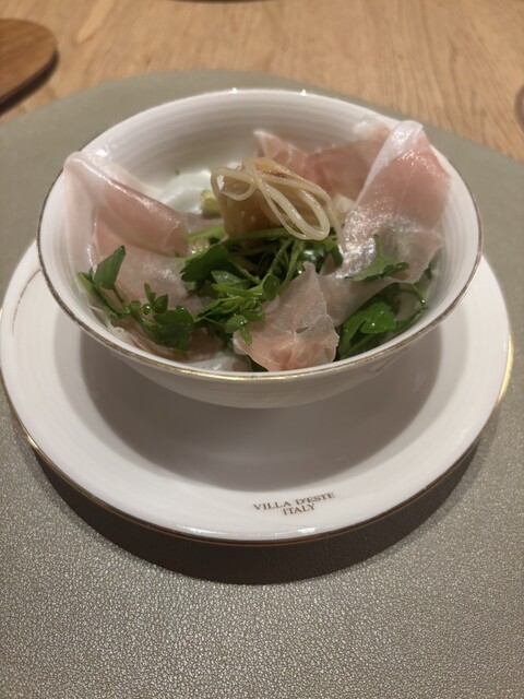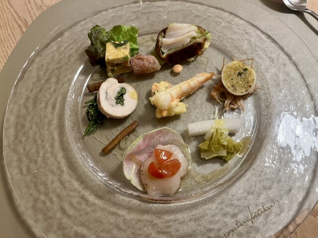 いろいろ面倒事を引き受けて貰った後輩に、御礼のランチをご馳走しに伺いました。更に頼み事もあった為、こちらのランチ最高額の1人1万1千円コースを。オーナーの人懐っこいキャラも相まって、居心地よく料理も見...