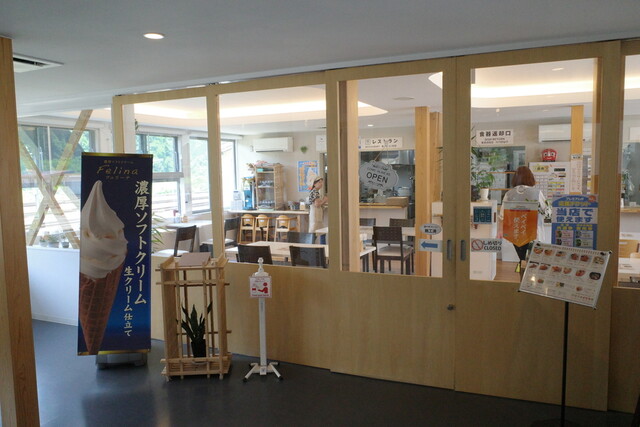 レストラン・カフェ共に同じスペースで営業しています。レストランの休業日は入口前に営業日カレンダーが掲示されてます。 |