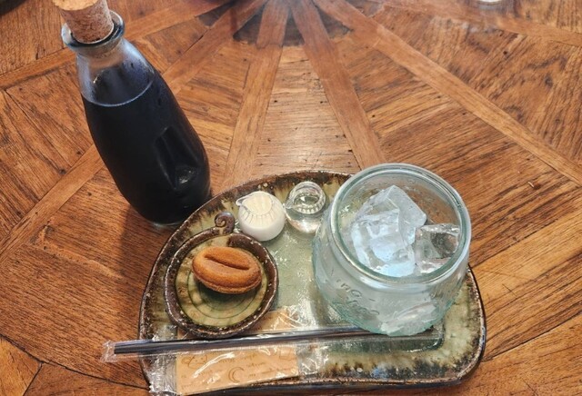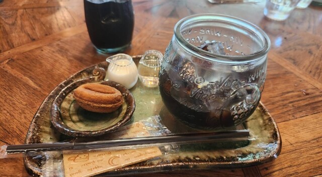 アイスコーヒーは冷えたビンから移して飲むようになっていて美味しい。