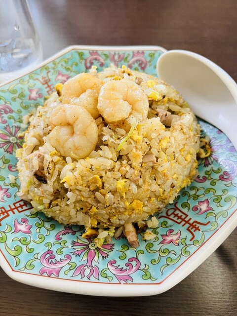 海鮮炒飯、カニのほぐし身とプリプリのエビが入っている。海鮮の風味が強く、とても美味しい。味付けもしっかりしてます。