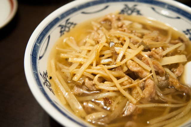 麻婆豆腐。山椒なのか痺れるような感じはあるが、全体的にピリ辛くらい。ネギがシャキシャキ。ご飯にかけたら美味しそう。