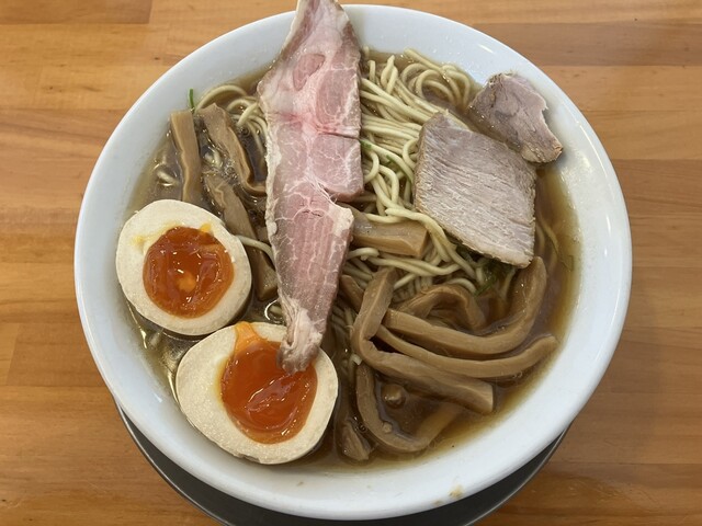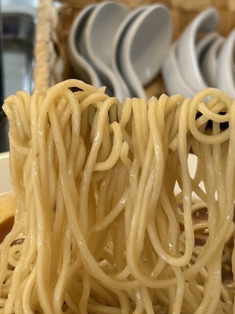 具材は青葱にメンマ、そして筋繊維が確りとしつつも柔らかく肉の旨味を感じる叉焼。総体としてユニー...