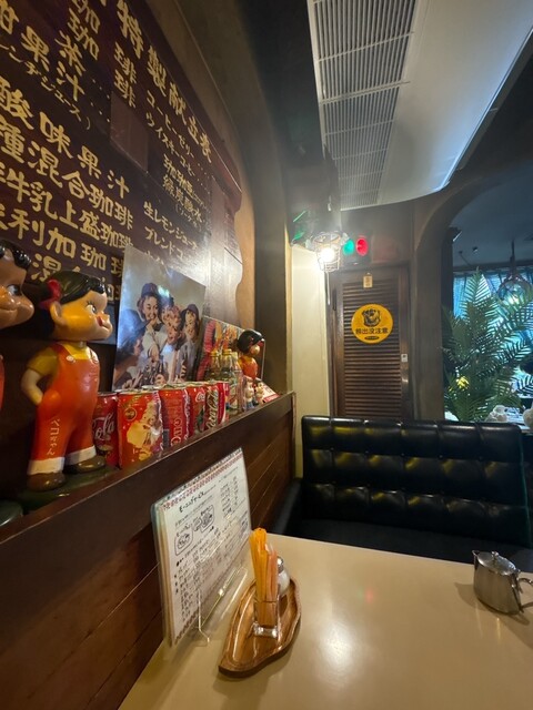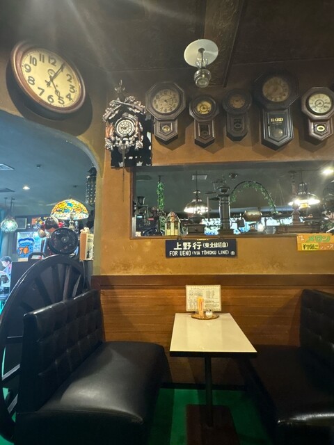 店内のインテリアがこれまた面白く、ペコちゃんやクリスマス限定イラスト入りのコカコーラ缶、壁時計、鉄道モノ、漁船関連…などなど、見ていて飽きません。