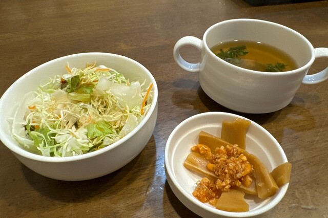 サラダ、スープ、メンマに始まり立派なコース料理だね